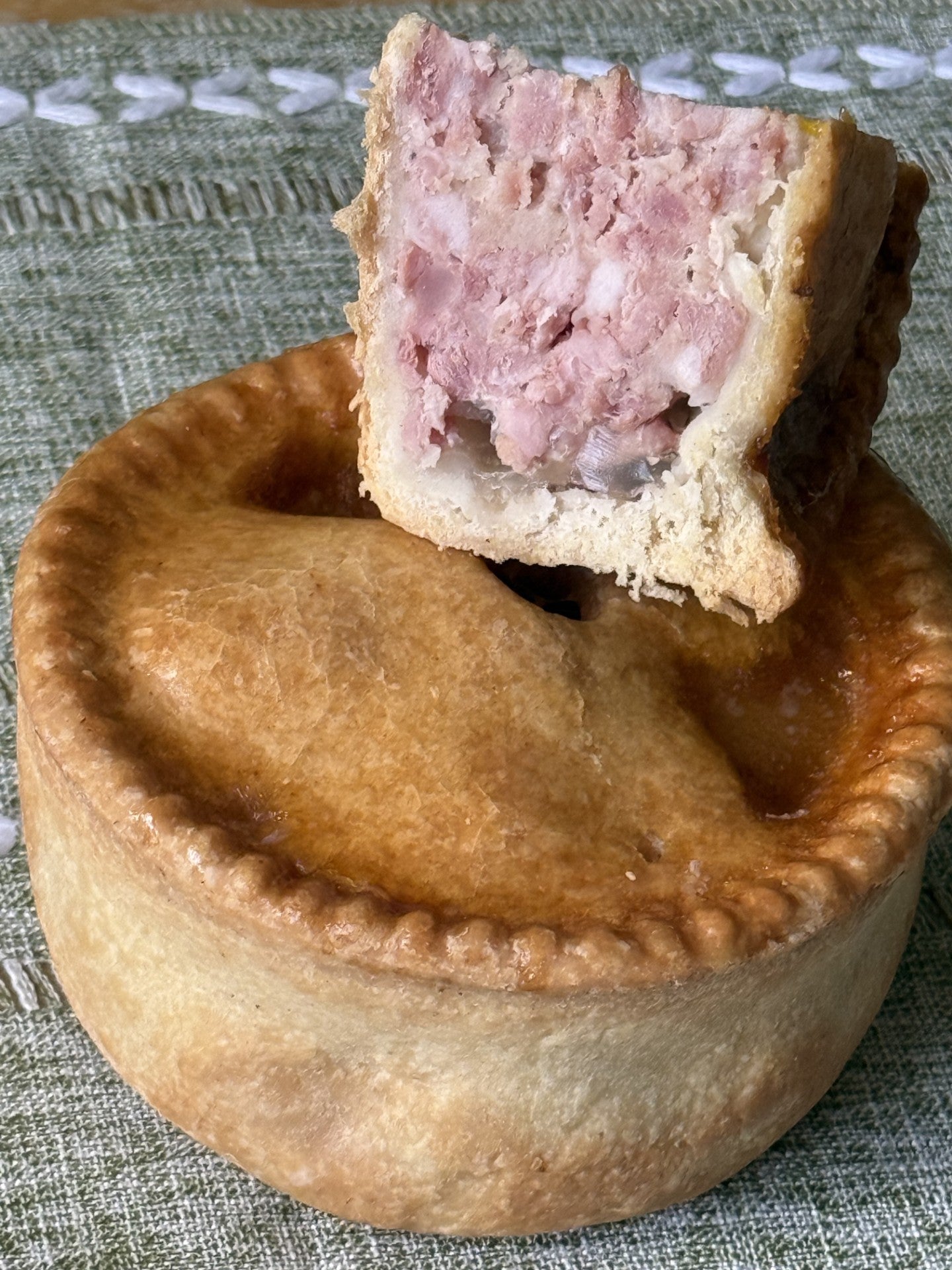 - 1/2 Moss Valley Pork Pie. Handmade on the award winning Povey farm, the home of our sausage meat.